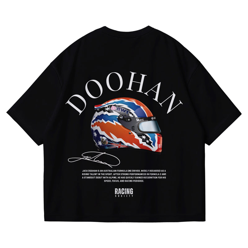 The Doohan Racing Tee is for the relentless — inspired by Jack Doohan’s no-nonsense style, sharp focus, and rising presence in the world of Formula 1. With clean lines and subtle design cues tied to his number and Alpine identity, this unisex tee is made from premium cotton and finished with a relaxed fit that moves with you. Whether you're repping at the track or on the street, it’s built for fans who like their gear the way Doohan races: fast, focused, and fearless. Available in sizes XS to 2XL.