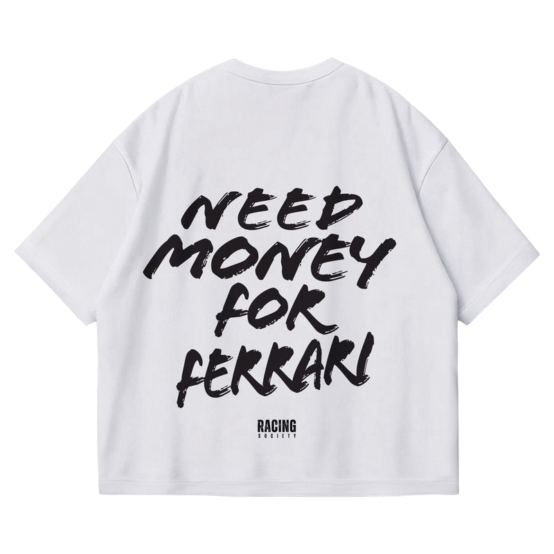 The Need Money For Ferrari Tee is a whole mood: fast dreams, red flags, and unapologetic ambition. Featuring bold red lettering on soft, high-quality cotton, this unisex tee brings race-day energy and Ferrari fantasies to your everyday fit. Relaxed fit, perfect for layering or standing out solo. Available in sizes XS to 2XL.