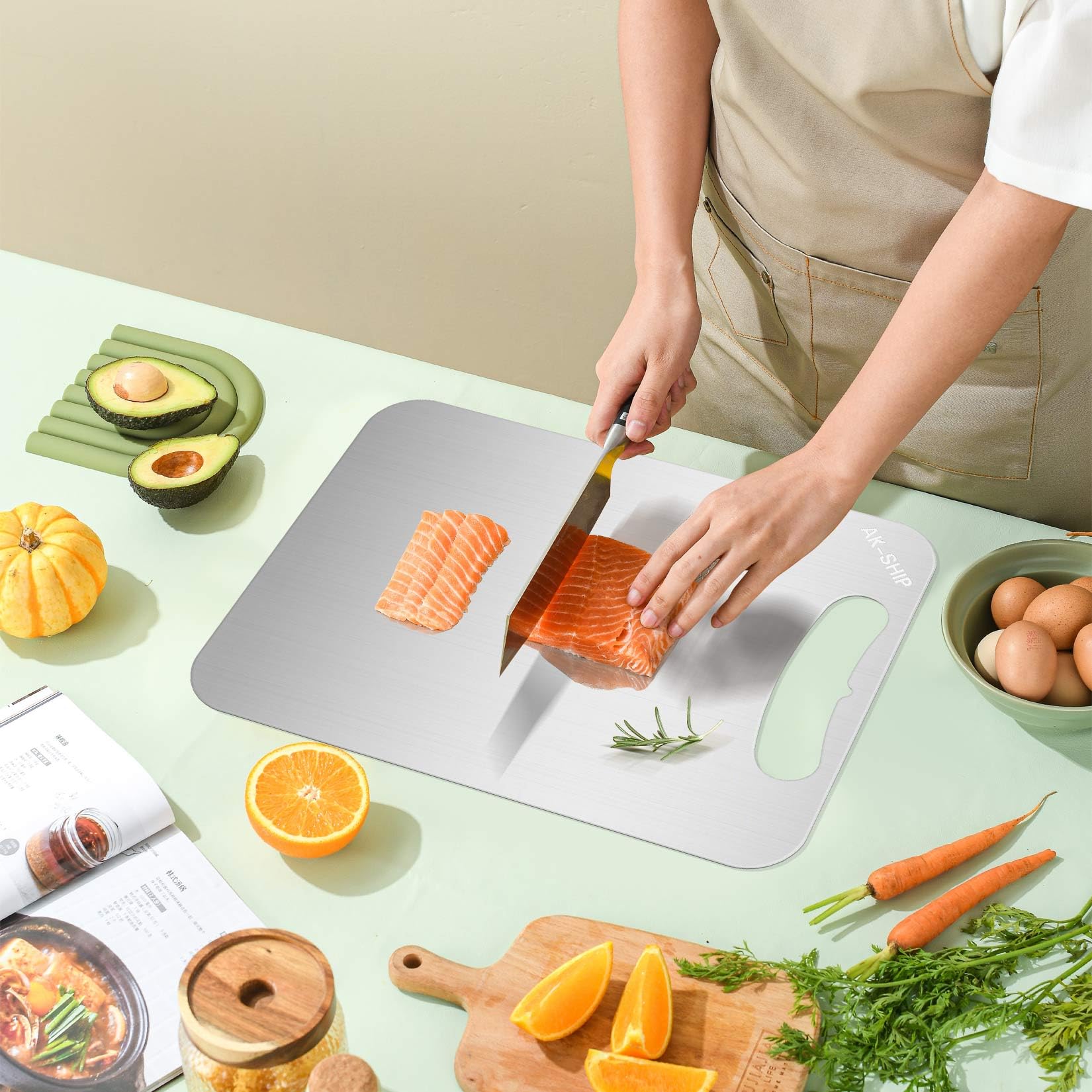Po daugiau nei dvidešimties metų virtuvėje supratau vieną paprastą tiesą: tikslumas ir švara yra viskas. Atšipęs peilis ar nehigieniškas paviršius gali sugadinti net pačias geriausias sudedamąsias dalis. Tradicinės pjaustymo lentelės niekada nebuvo pakankamai geros – todėl sukūriau TitanCut™. Pagaminta iš 100 % medicininio titano, ji yra antibakterinė, netoksiška, švelni peiliams ir sukurta tarnauti visą gyvenimą. TitanCut™ nėra tiesiog pjaustymo lentelė – tai tikras atnaujinimas sveikesnei virtuvei.